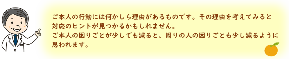 ご本人の不快の原因を探り、できるかぎり取り除くことが大切です。